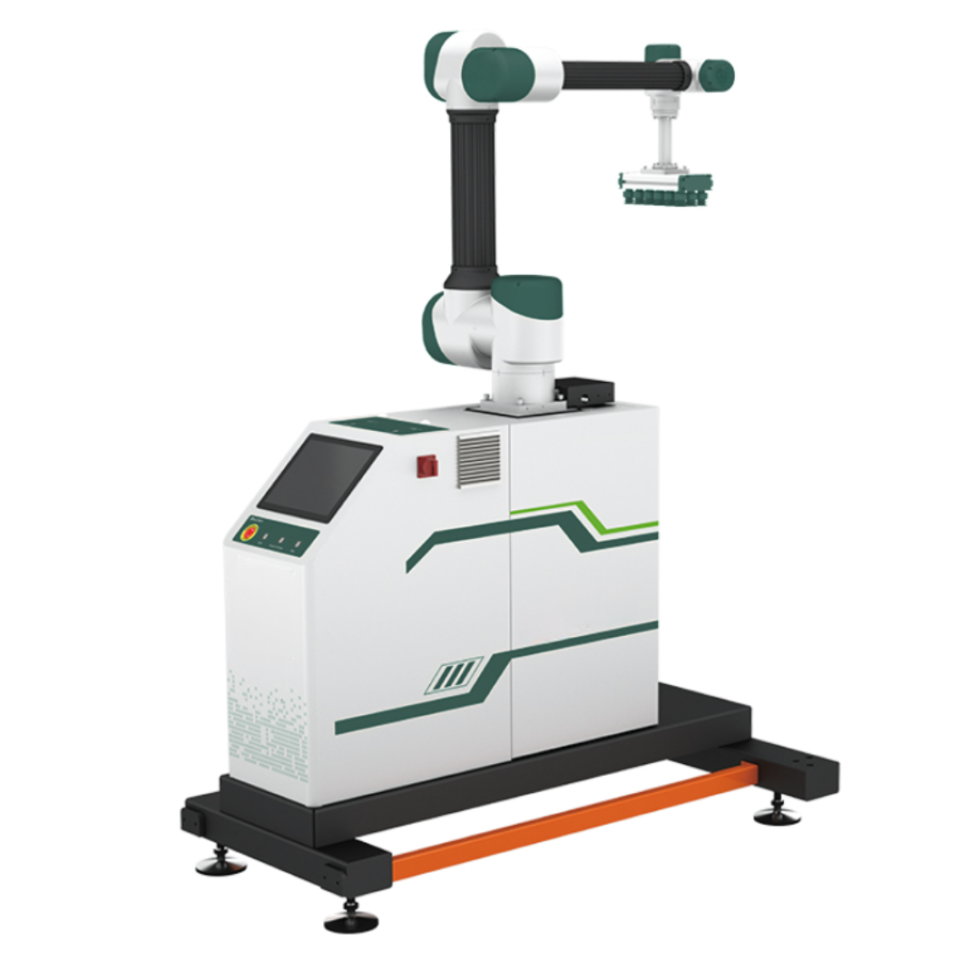 Este robô paletizador colaborativo foi desenvolvido para responder às necessidades de paletização em ambientes industriais leves, combinando inteligência, segurança e facilidade de implementação. Trata-se de uma solução versátil, ideal para empresas que procuram automatizar processos de fim de linha de forma rápida e eficiente.